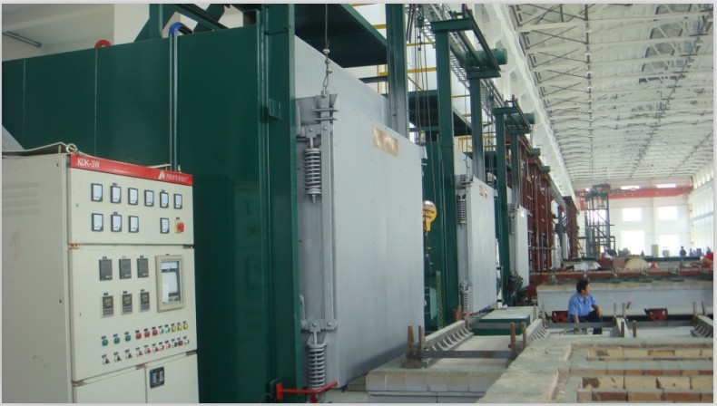 臺車:采用高鋁磚砌筑,用于承載工件。臺車上鋪有0Cr27Al7Mo2或0Cr25Ni20耐熱鋼爐底板,防止氧化皮掉入加熱器造成短路。