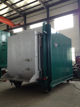 此產(chǎn)品適用于小工件堆積擺放,臺車不動,爐體移動,工件不會倒塌;且臺車與地平接觸面積大,壓強(qiáng)小,故裝載量能大于臺車式爐。
